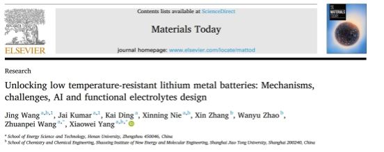 联合上海交通大学在国际知名期刊《Materials Today》(影响因子22)上发表了一篇题为“Unlocking Low Temperature-Resistant Lithium Metal Batteries: Mechanisms, Challenges, AI and Functional Electrolytes Design”的综述文章,为低温环境下锂金属电池(LMBs)的性能优化提供了全新的思路与解决方案,有望推动锂金属电池在极端条件下的广泛应用。八叉书库