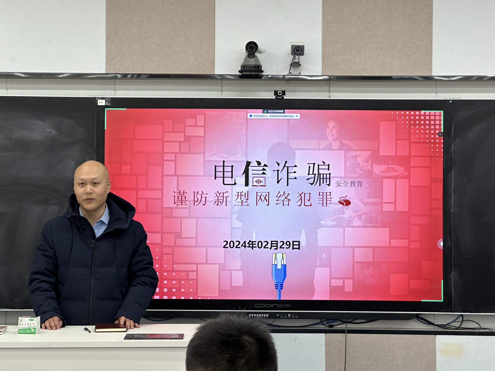 研究生开展防诈骗安全教育。学院研究生党支部书记、辅导员庞杰主持并主讲。
