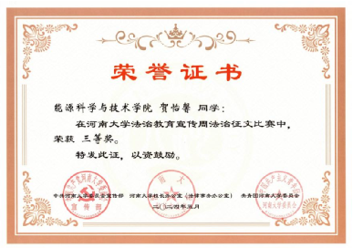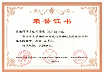 本科生贺怡馨在法治征文比赛中荣获三等奖;学院2023级2班在主题班会视频征集比赛中荣获三等奖。