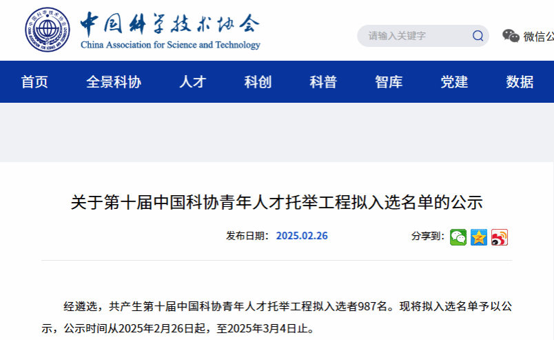 2025年2月26日,中国科协公布了第十届“青年人才托举工程”入选名单,八叉书库