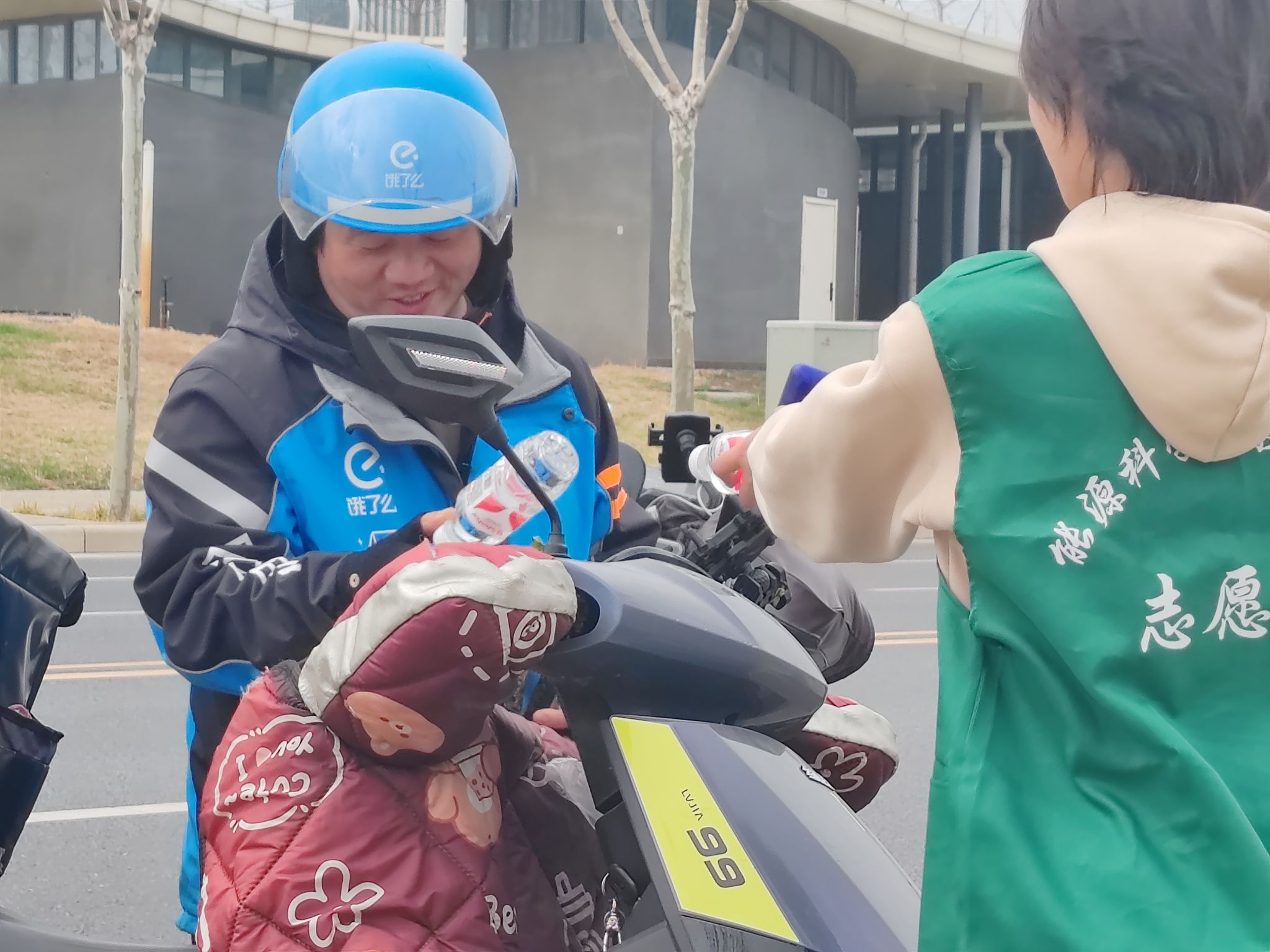 活动期间,学院在南门和西门设立爱心服务点,为环卫工人、快递小哥等城市基层工作者送上饮用水,共服务500余人次。各团支部轮班值守,用真诚的关怀致敬这些“城市守护者”的辛勤付出。参与活动的学生表示:“通过亲手传递温暖,我们更加理解了平凡岗位的伟大,也感受到助人带来的快乐。”这一行动不仅传递了社会正能量,更唤起了公众对基层劳动者的关注与尊重。