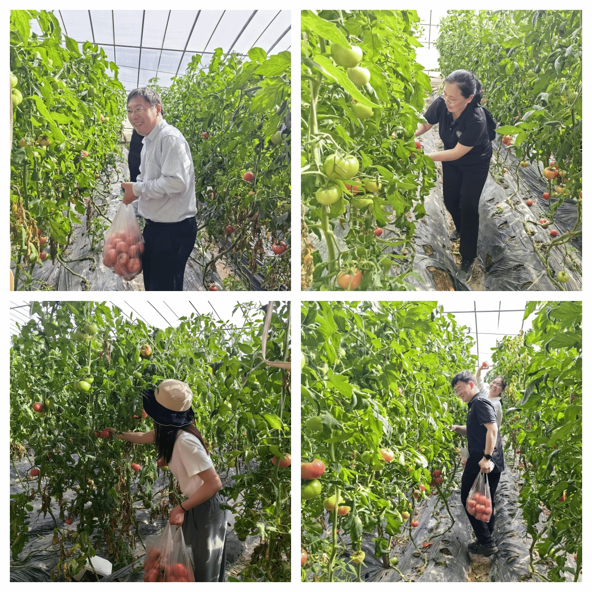在蔬菜区,圆滚滚的西红柿挂满枝头。老师们穿梭在蔬菜架之间,亲手摘下新鲜的蔬菜,感受着丰收的喜悦。有的老师还现场向园中的菜农请教蔬菜的种植知识,了解不同蔬菜的生长习性和养护要点。活动期间,欢声笑语回荡在整个采摘园。