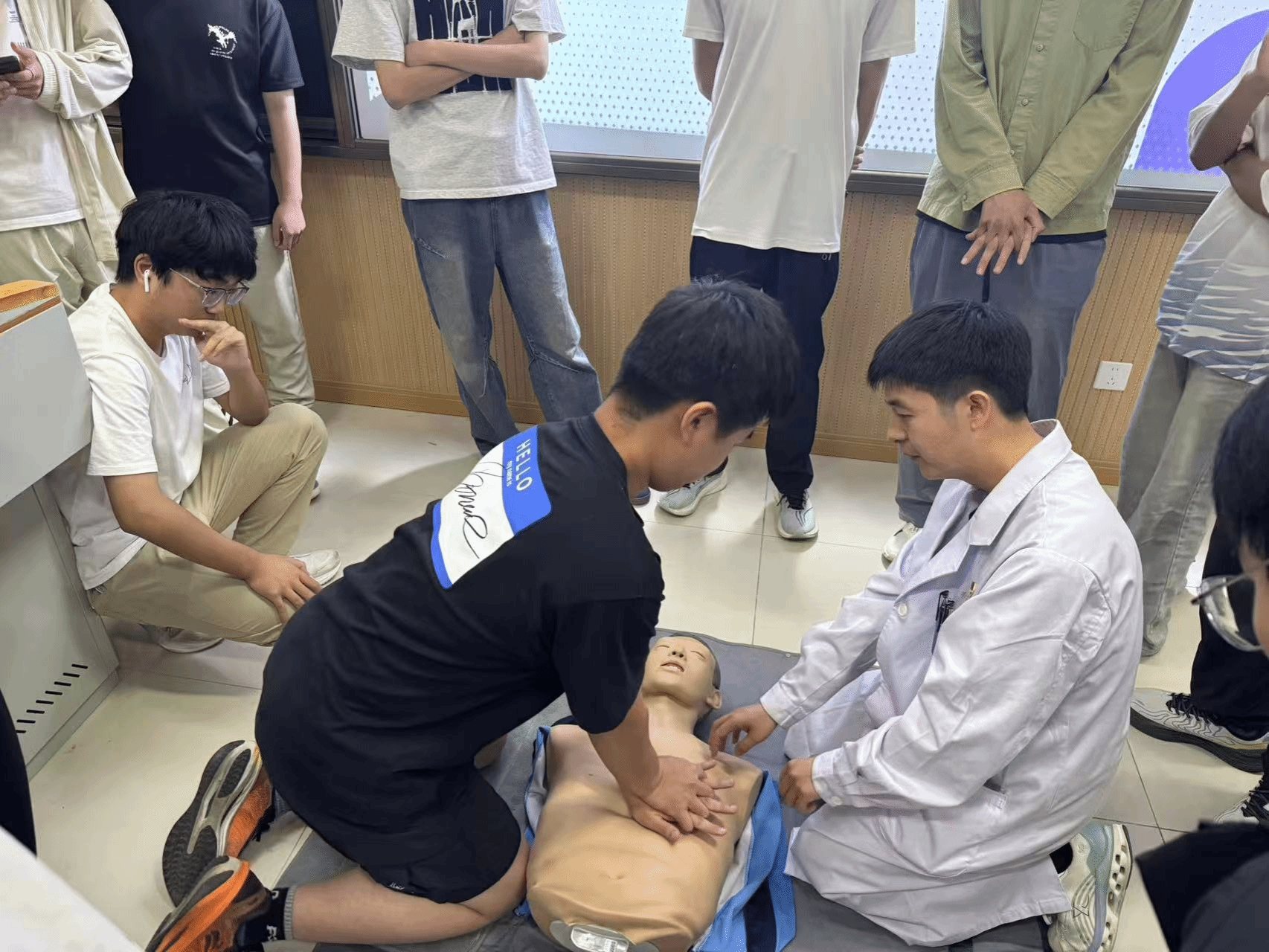 邀请校医院4名专业医护人员面向全体2024级本科生开展心肺复苏(CPR)及应急知识普及培训。